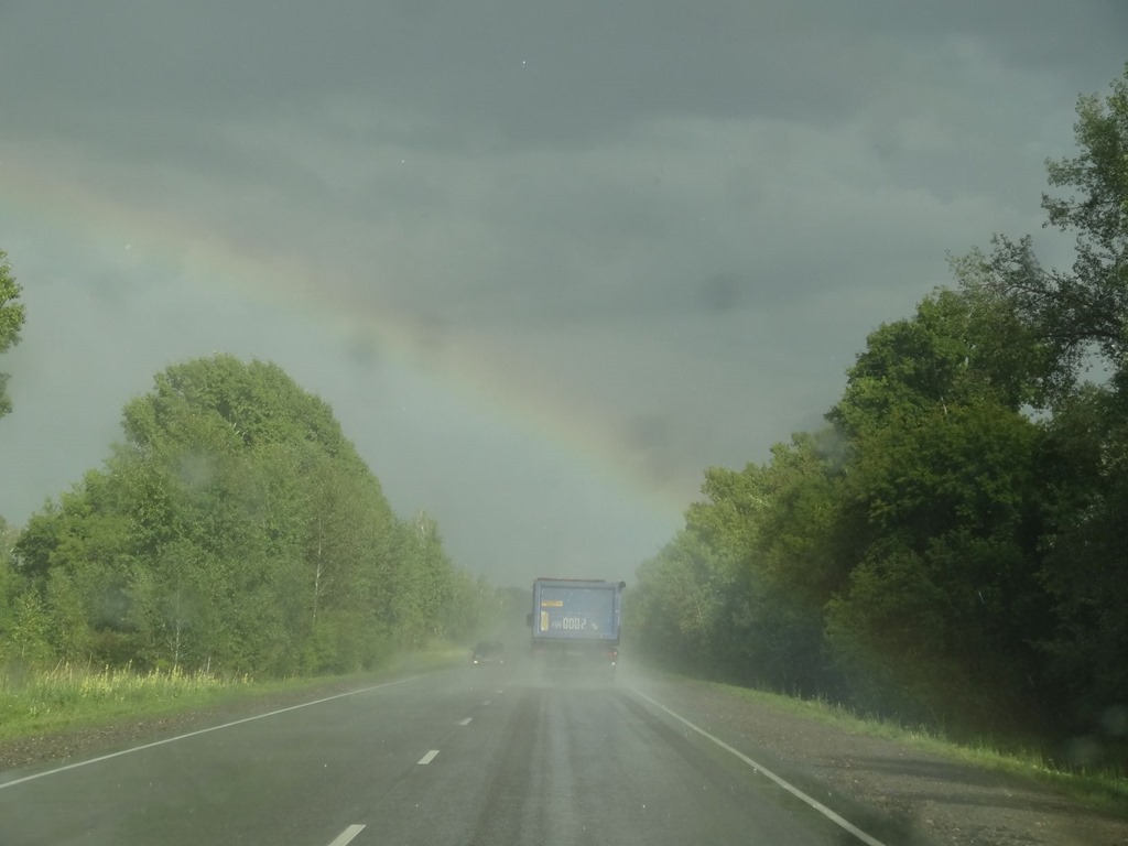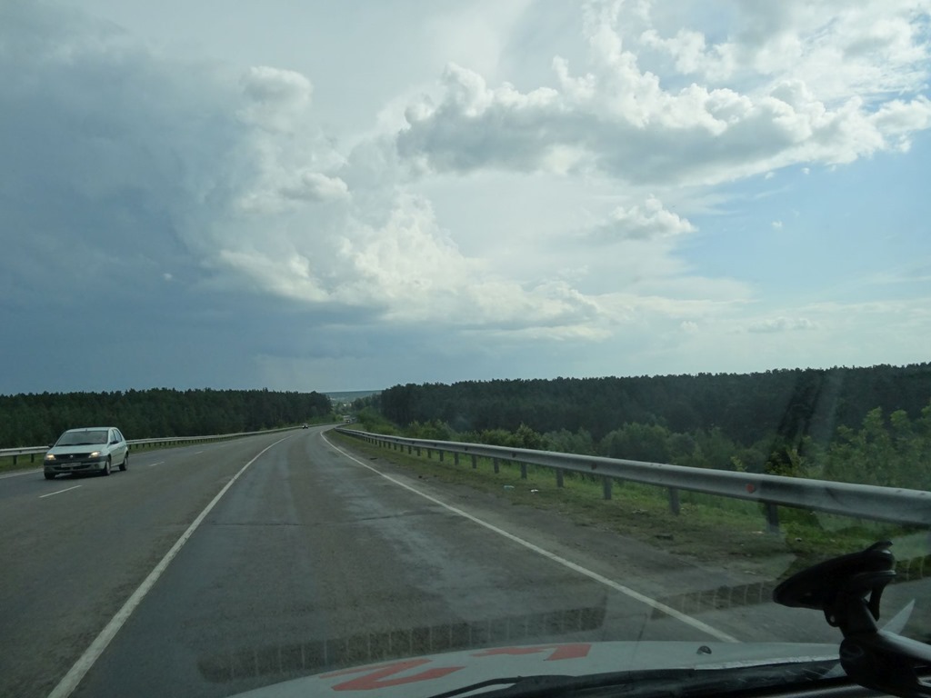Vorerst aber verlief alles normal – etwas Regen, eine lange Strasse zum Horizont – eine hochkonzentrierte Fahrmannschaft und die Weite Sibiriens vor, neben und hinter uns.