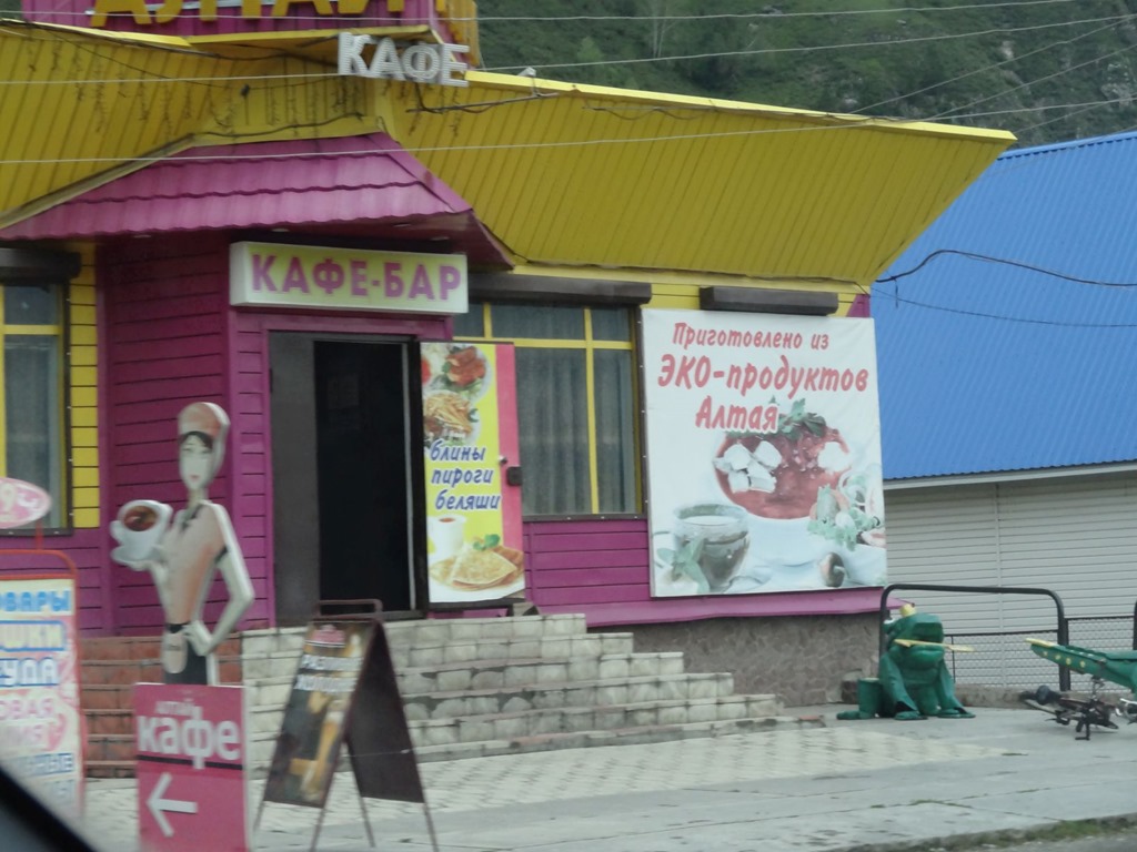 Und so fuhren wir – komplett von allen Hotels verlassen in den Abend hinein, dann in die Nacht und es wurde weder bewohnter noch hotellierter, noch heller. Zum Glück hatten wir mit dem Kebab wenigstens was im Bauch und schlafen könnten wir zur Not ja auch im Auto. Bloss war dies natürlich der Notfallplan, welcher wie alle Notfallpläne ja nicht eintreten soll – aber unsere Lage wurde nicht besser. So um 22:00 gab’s endlich mal wieder einen beleuchteten Schuppen an der Strasse und wir hielten an. Drinnen eine ältere, sichtlich angetrunkene Dame mit fast leerer 2.5 Liter Bier-Pet-Flasche und zwei Angestellte – allesamt mit Null Fremdsprachenkenntnissen – bis auf die Pet-Flasche, welche auch anderssprachig beschriftet war, aber die blieb stumm. Wir also Hotel Otea etc gemurmelt – internationale Schlafgeste gemacht und tatsächlich schien es in der Nähe ein Guest House zu geben, doch ergab ein Augenschein vor Ort, dass die Reception nur bis 20:00 besetzt war – Pech gehabt und ergo weitergefahren – endlos – nach einer weiteren Stunde wurde dann der Notfallplan aktiviert – die nächste sinnvolle Haltegelegenheit würde für eine Autonacht genutzt. Aber – vielleicht weil the Face der alten Dame noch einige Rubel gespendet und damit etwas für unser Kharma getan hat – da tauchte doch tatsächlich nochmals ein hell erleuchtetes Haus auf: Ein Restaurant – also nix wie rein – Essen ist nie falsch und wo’s Essen gibt, gibt’s oft noch mehr.
