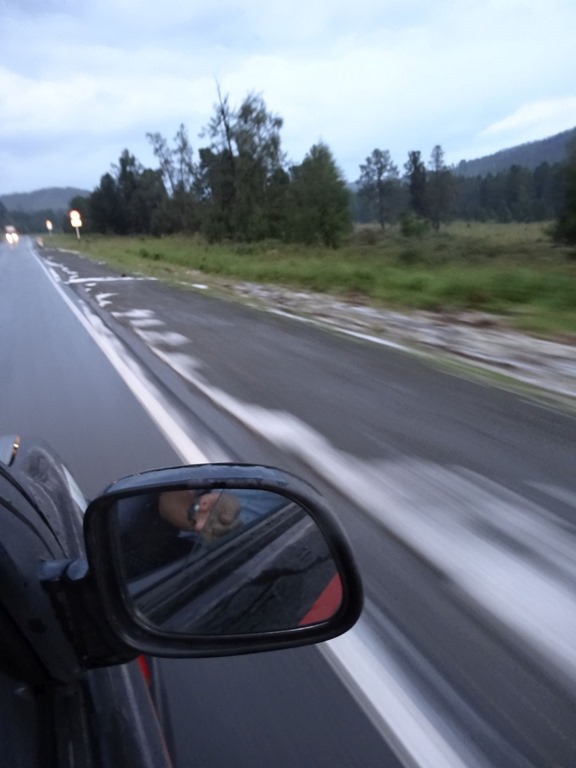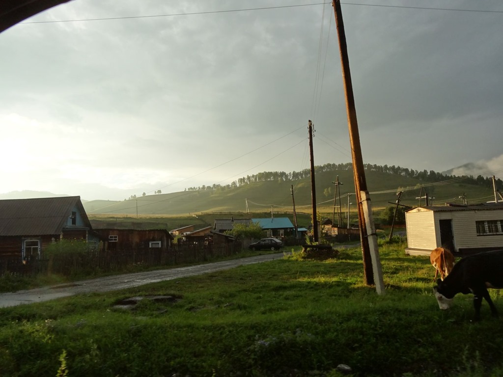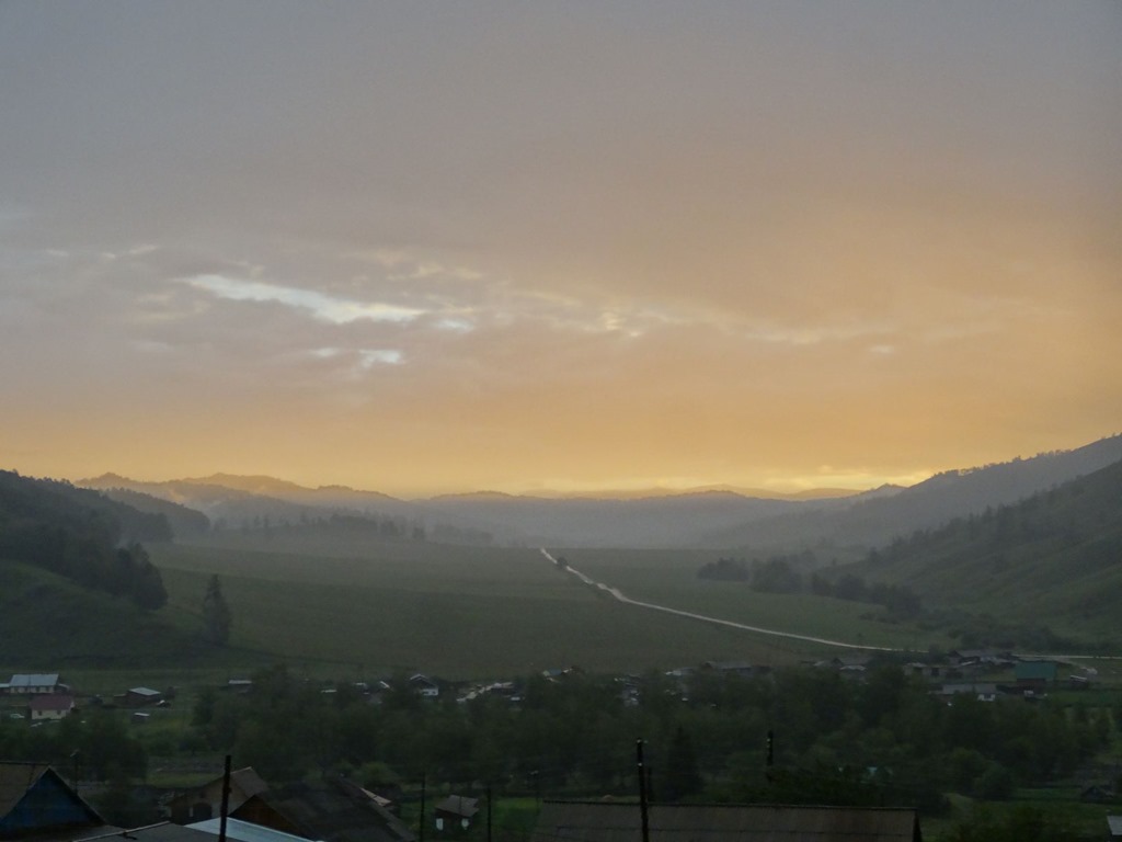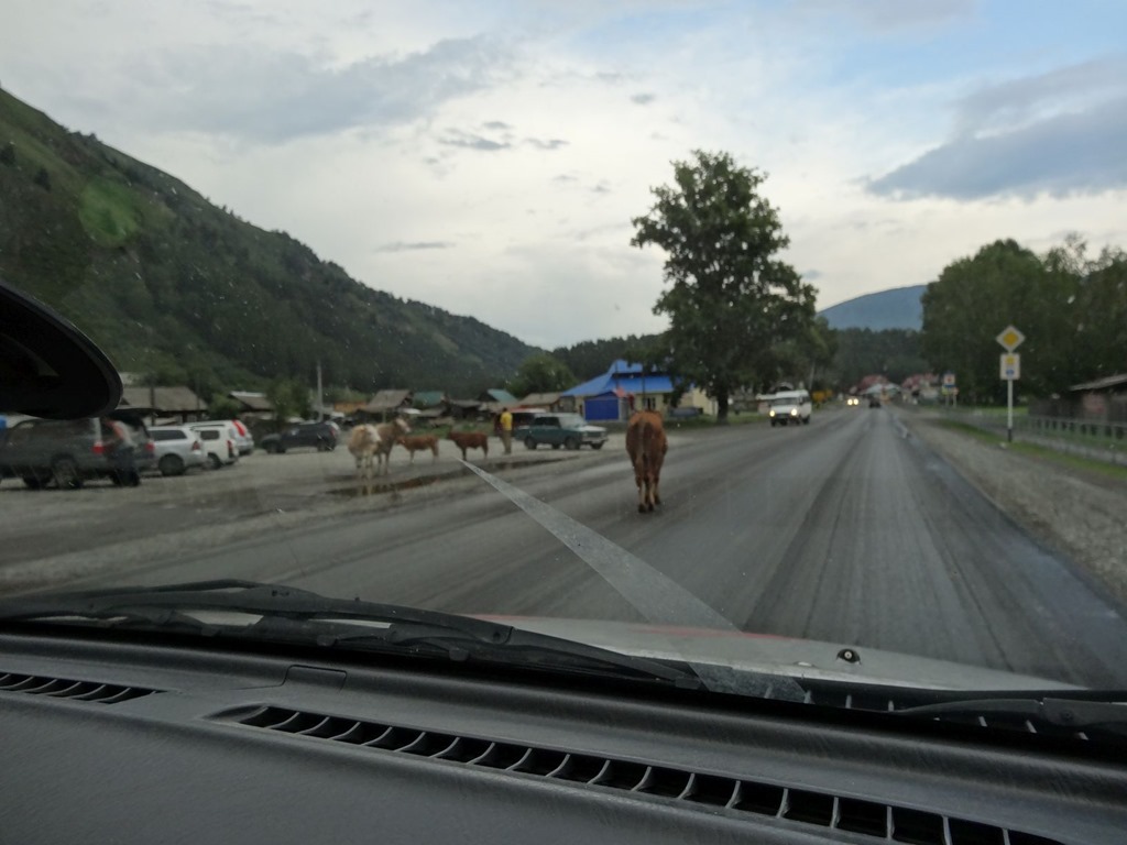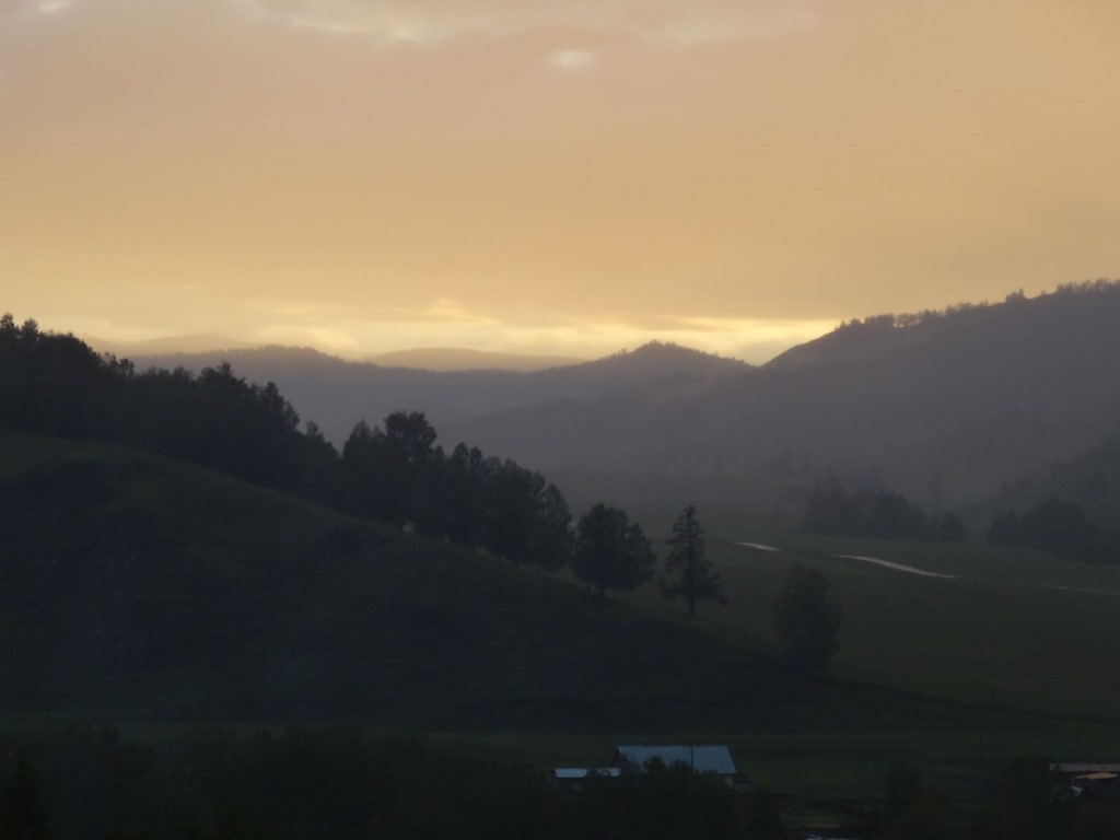 Und tatsächlich das Restaurant vermietete auch noch Schlafhütten – gerettet. Also haben wir noch kurz was gegessen – the Face das weltberühmte altaische Pferdefleisch und Dr CJS irgendwelche süss-rauchig-nussigen Kugeln – ebenfalls Altai-Kulinarik pur, wobei die Kugeln bloss nicht sehr fein – das Pferdefleisch leider hingegen schon etwas ältlich war, was the Face dann die nächsten Tage bitter bereuen musste. Ansonsten war’s aber sehr lustig – unsere Nachbarn waren ein Moskauer Filmteam, welches einen Dokumentarfilm über die Region drehte und seitens des Restaurant half ein junger Archäologe mit Übersetzen – und er hat uns dann bei wunderschönem Mondlicht noch sehr lange Geschichten über Altai und die verschiedenen Religionen und Stämme dieser Turk-Völker erzähl. sehr wichtig waren im auch die Berge, denn diese Turk-Völker betrachten – diese Altai Berge als Wiege der Menschheit betrachtet, von welcher aus die ganze Welt besiedelt wurde. Dazu gab’s auch noch Geschichten über Bären, Schneeleoparden und fette Pferde – denn wenn der 8. Vollmond ist, muss ein gutes Pferd fett sein, damit es den Winter übersteht. Eine wirklich eindrückliche Gegend und – ich liebe es, wenn man den Notfallplan nicht braucht!