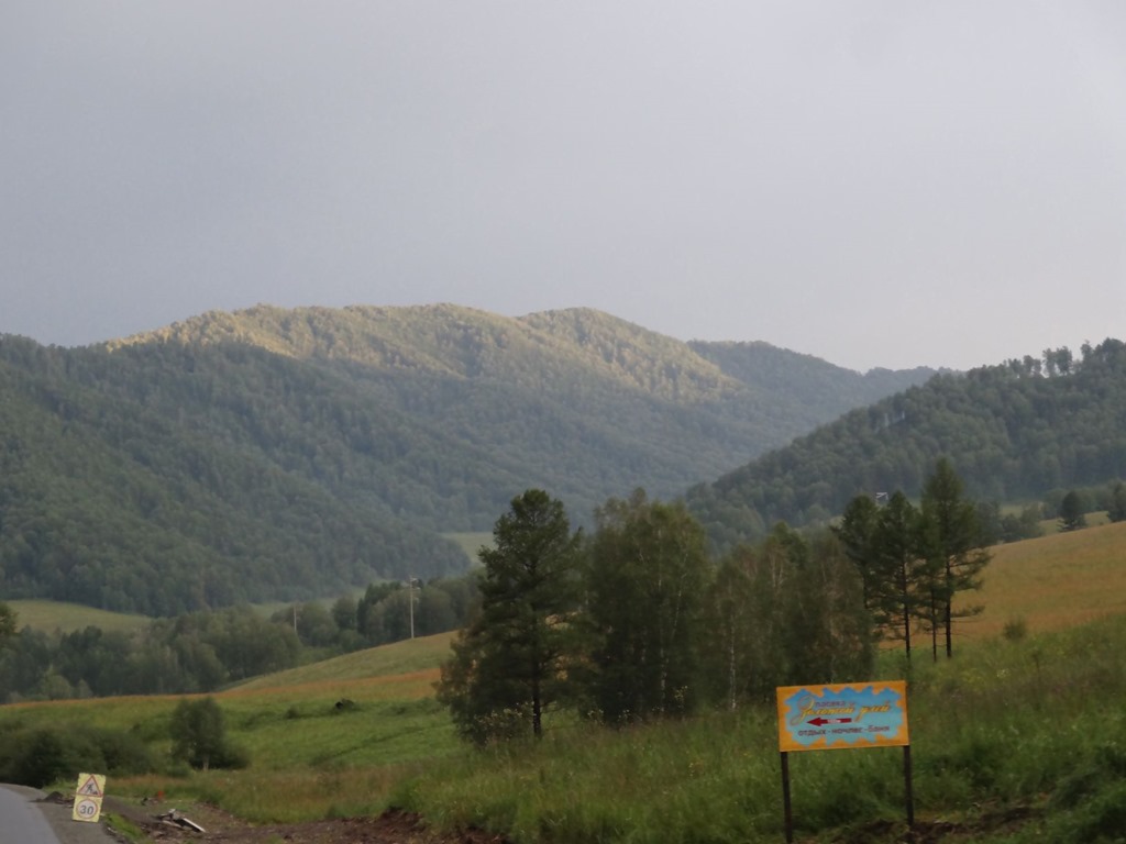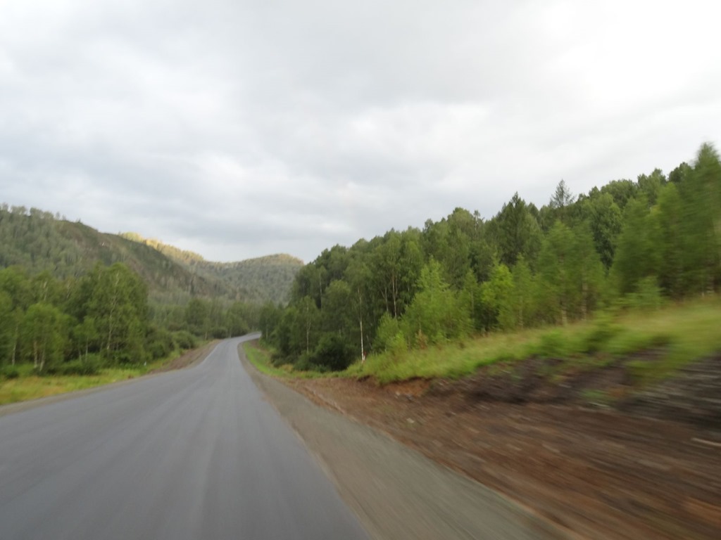 Im Plattenbauhotel gab es ein spätes, aber herzhaftes Frühstück- danach erfolgte der Aufbruch ins Ungewisse – denn ab hier gab es für die nächsten Tage keine Plan mehr, d.h. wir hatten eine vage Vorstellung von der Route, aber das war’s dann schon. Runter an die mongolische Grenze, dort einreisen und dann auf der schnellsten Route quer durch’s Land – gemäss Google Maps ist Novosibirsk – Ulan Bator in ca 35 Fahrstunden zu machen – leider – wie sich herausstellte nicht die erste Fehlprognose des Datengiganten…