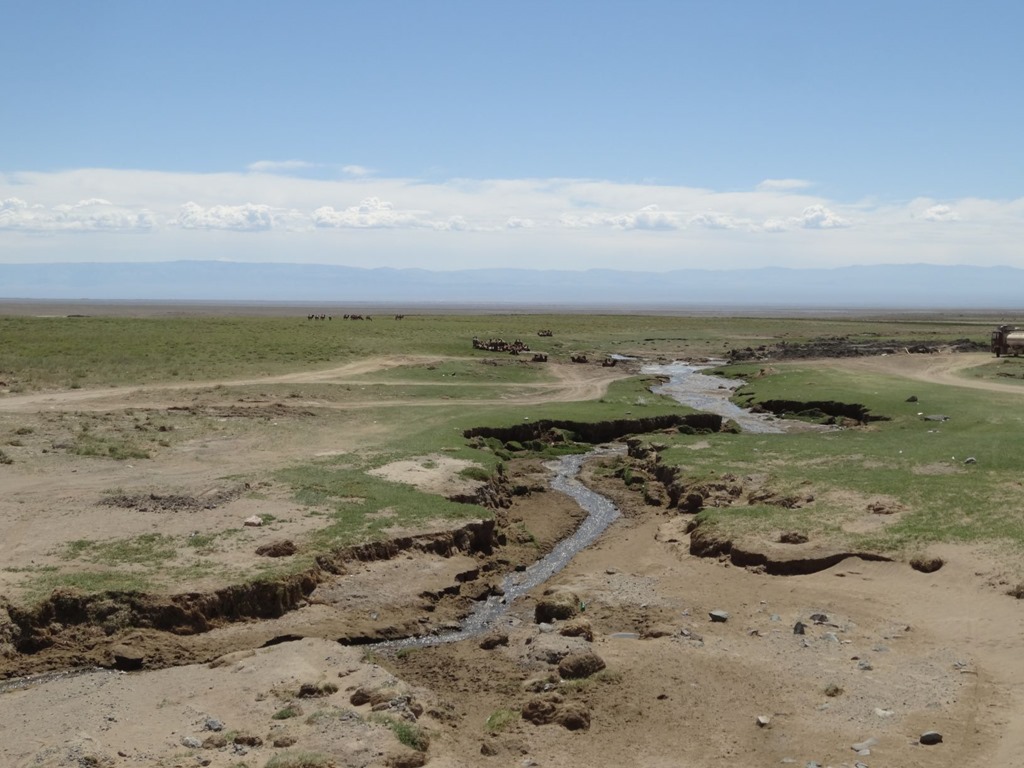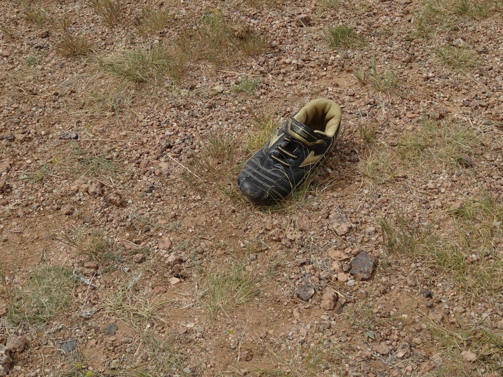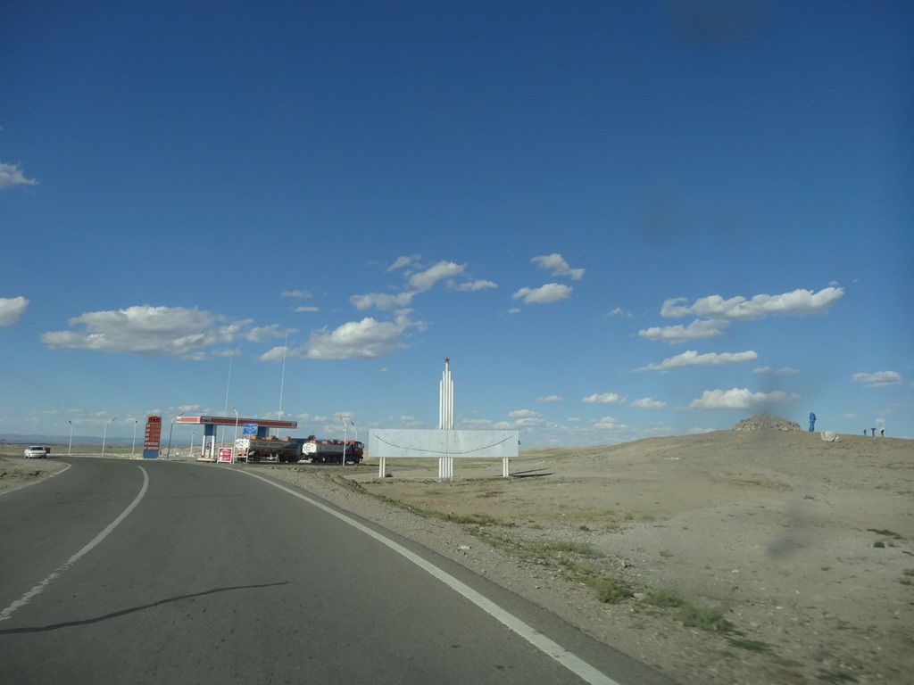 Die Eintönigkeit der Landschaft wird immer mal wieder durchbrochen von solchen Skulpturen – gemäss Mad Murdoch handelt es sich um Kunstwerke eines lokalen Künstlers, welcher den Abfall unterwegs einsammelt, damit die Menschen daran gemahnt werden, nicht soviel Abfall zu produzieren – leider mit gegenteiligem Effekt, weil die Mongolen dermassen Freude an diesen Kunstwerken haben, lassen sie überall den Abfall liegen…