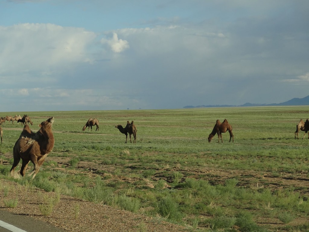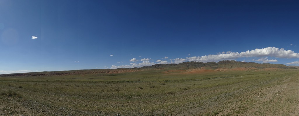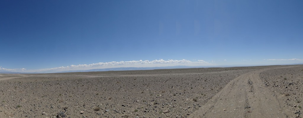 Unsere erste Nacht in der Wüste haben wir gut überstanden und etwas ausgeschlafen, bis die Sonne und damit die Hitze in unserer Jurte einfach zu intensiv wurde. Danach flugs das Fondue-Caquelon mit etwas Sand und Wasser ausgeschauert und Kaffee, Stocki-Quick-Menu und China-Nudelsuppen gekocht und uns so für die weiteren Pistenkilometer gestärkt. Denn die Strecke von Khovd nach Altai wurde von unserem Gastgeber in Olgi als ca. 450 Km Lang, wovon 200 Km Teerstrasse und der Rest Piste taxiert. Und nachdem gestern der Tarmac – eine Liebkosung der Welt an einen Mr Mac Adam, welcher den Teer oder die Strasse oder so erfunden haben soll, weshalb die Franzosen Teerstrassen immer noch als Macadam bezeichnen – und der Tarmac wohl vom geteerten Mac kommen muss – jedenfalls wir lieben ihn auch. Aber eben gestern reichte der Teer bloss für 180 Km, danach haben wir in 1 1/4 Stunden Fahrt genau noch 50 Pistenkilometer geschafft und somit würden wir heute grad richtig einsteigen.