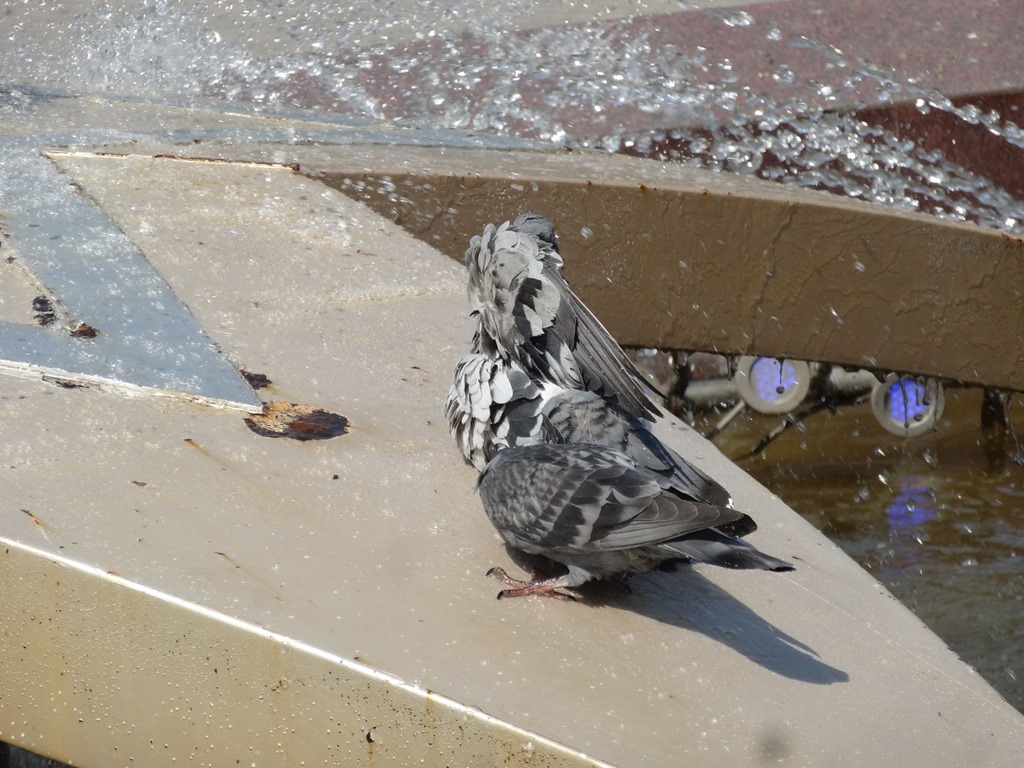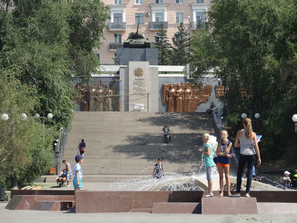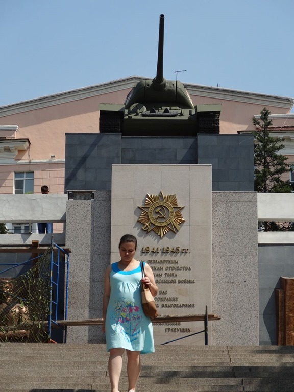 Auch Architektur und Denkmäler waren zu bewundern – für einmal turtelten die Täubchen nicht, sondern badeten und dann rollte auch noch ein russischer Panzer zur Treppe vor – Action pur – dazwischen viele Touris und ein paar aufgeweckte Jungs – deren Betreuerin hat uns in sehr gutem Englisch angesprochen und ein bisschen ausgefragt und die Buben hatten danach einen Heidenspass hello & goodbye zu rufen…