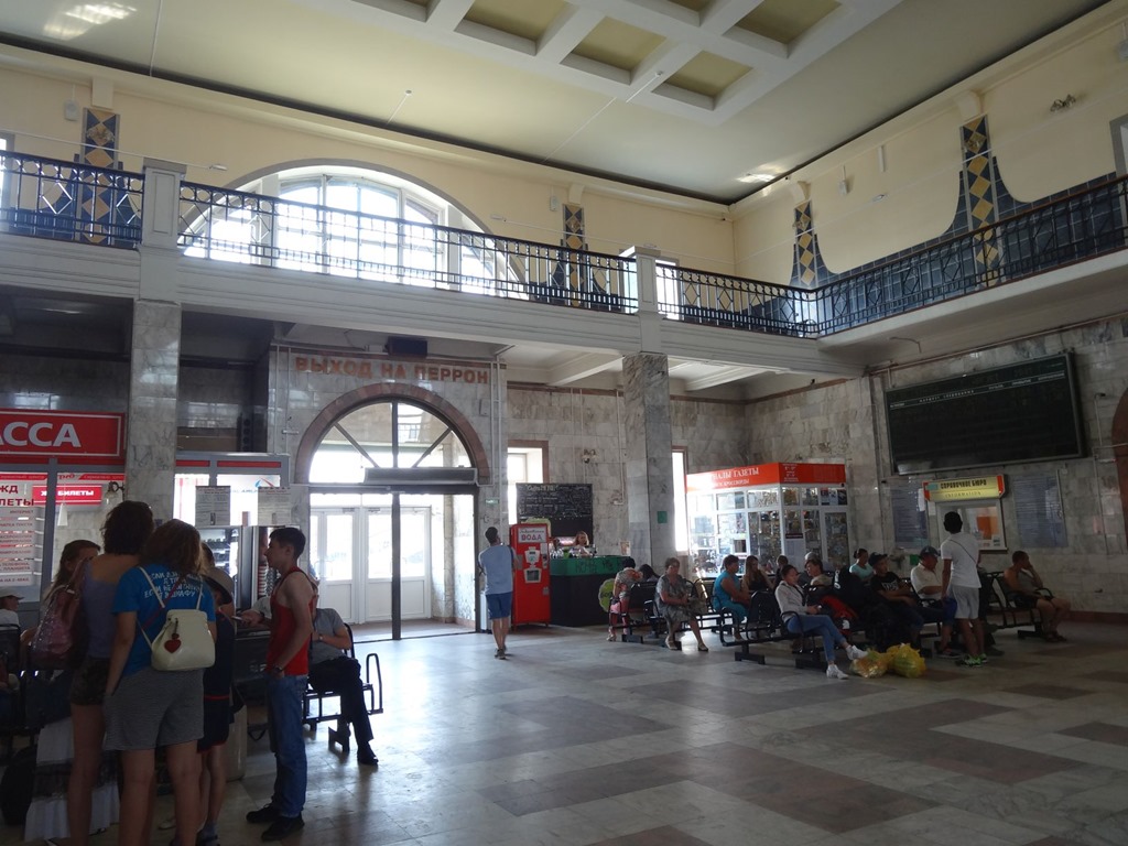 Immerhin haben wir noch die transsibirische Eisenbahn gesehen – jedenfalls ein paar davon – wobei man in der Bahnhofhalle klar erkennt, dass der Zug wohl nicht mehr das Hauptreisemittel ist – zu beschwerlich und langsam ist die Reise – ergo gibt’s nur noch ein paar wenige Passagierzüge, der Rest nimmt wohl den Flieger.