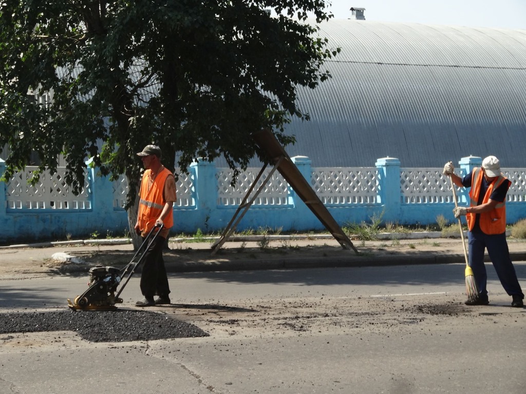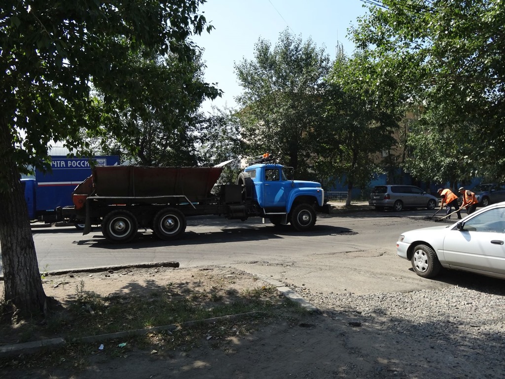 Und obwohl wir nicht fahren, darf die Rubrik Baustelle des Tages nicht fehlen – unglaublich unter welch miesen Bedingungen diese russischen Strassenbauer Schlaglöcher flicken müssen und wenn’s eng wird, kommt’s auch mal vor, dass ein LKW über eine frisch geteerte Stelle fährt und dann mit seinem Reifenprofil auch gleich markiert, dass er die bessere Strassenwalze ist, als dieses Rüttelplattenspielzeug. Frisch geteert und gleich wieder ausgefahren…
