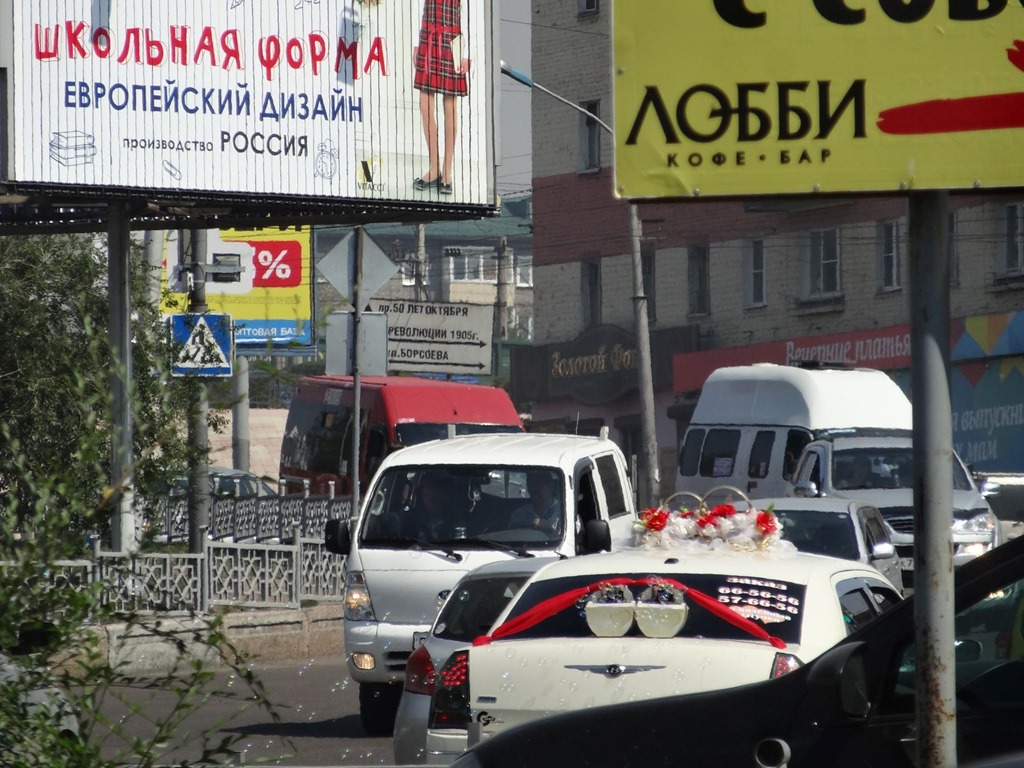 Lustig war auch, dass den ganzen Tag mit grossem Gehupe und sogar mit integrierter Seifeblasenmaschine unter dem gestrengen Blick von Genosse Lenin geheiratet wurde – und das zog sich dann so lange hin, dass wir bei der Heimkehr ins Hotel auch gleich noch einigen euphorisierten Hochzeitsteilnehmern Auskunft geben mussten.