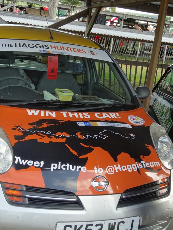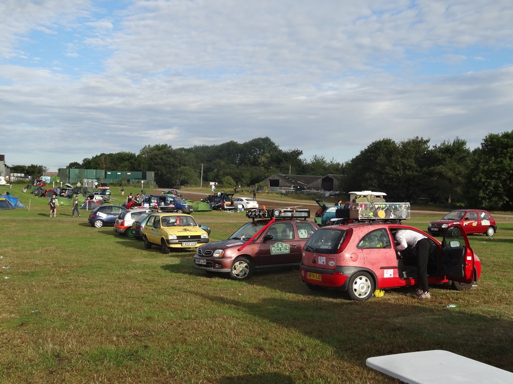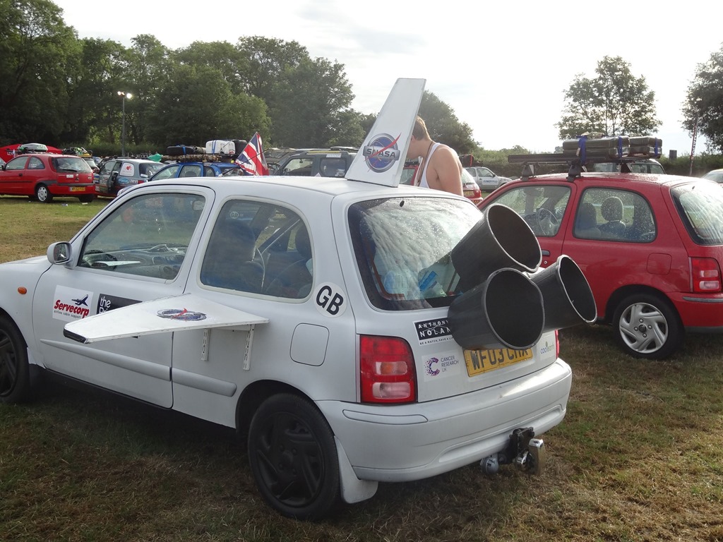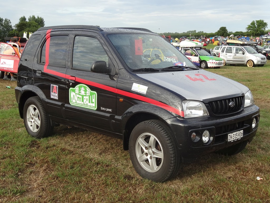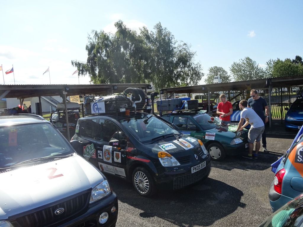 Nach einer bewegenden, formellen Ansprache des Gründers der Mongol Rally, welcher selbige als Student-Bieridee vor ca. 12 Jahren ins Leben gerufen hat und einigen Interviews, wobei auch the Face zu Wort kam – leider nur verbal und nicht visuell – denn seine Stärken sind Charaktergemäss schon in der bildlich expressiven Ausdrucksweise – allerdings muss man fairerweise festhalten, dass the Face immerhin einige fliessende Worte in gepflegtesten Züri-Oxford-Englisch ins Mikro flötete, wohingegen unsere Pandabärchen ihrem Klischee vorbildlich gerecht wurden und den Einsatz verschliefen… egal – der Start rückte näher und wir bekämpften die Nervosität mit einem weiteren Kaffee und einem Rundgang durch den Paddock.