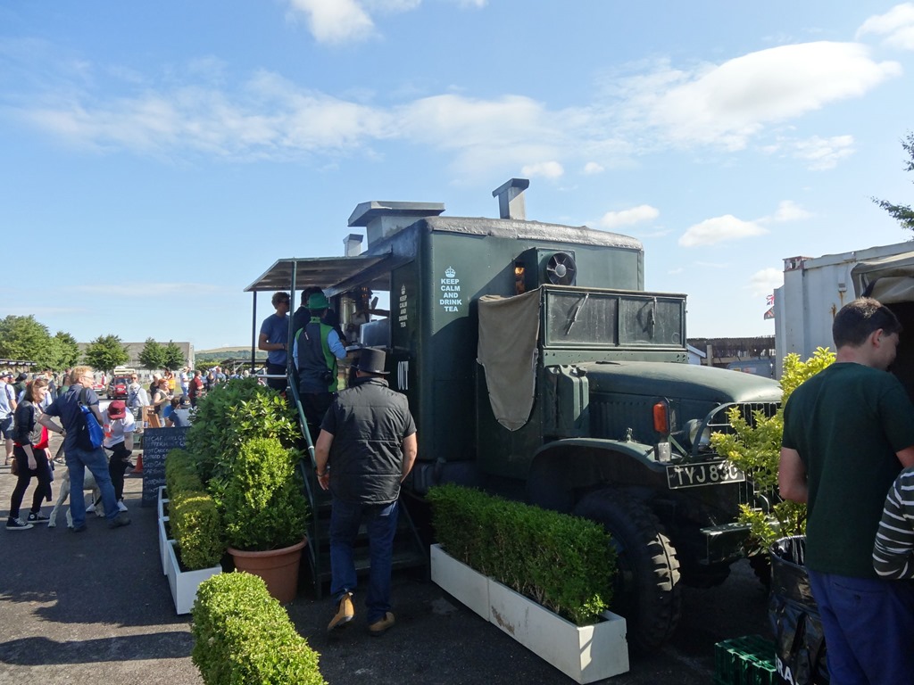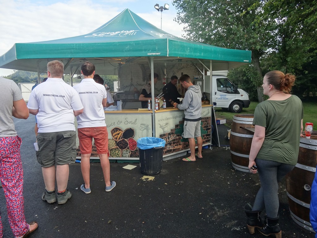 Das war dann eine klassisch britische Effizienzlösung – denn wenn es weder Platz für ein Buffet hat und ohnehin das Budget beschränkt ist, dann kann ja der Hamburgerstand vom Vortag einfach weitergrillen – statt Hamburger dann halt Frühstücksspeck oder Frühstückssausages – das ganze in ein Hamburgerbrötchen geknallt et voila / and here comes your finest British breakfast – vollmundig beworben als “Epic Breakfast Rolls” wobei man als nicht-Brite nur versteht, dass Rolls ohne Royce eher nciht de Luxe ist.