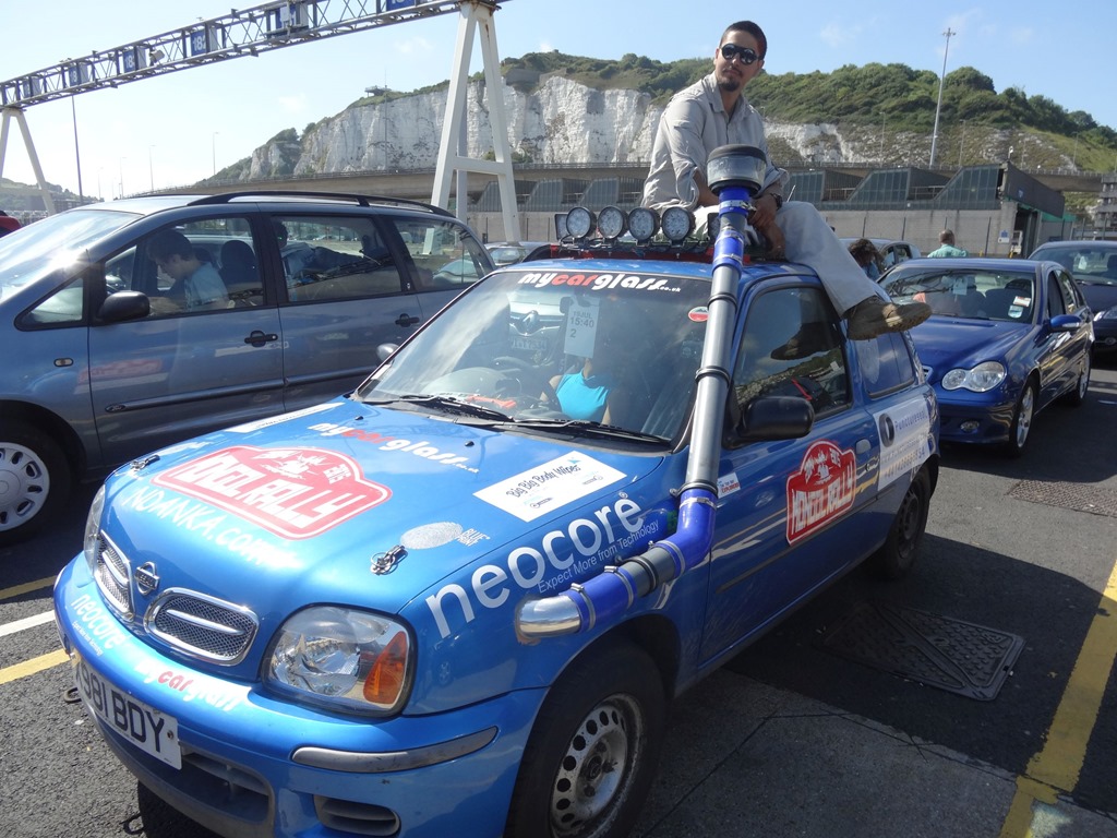 Vor der Fähre einige Rally-Autos, aber der Groove war noch nicht so richtig da – alle waren nervös, was einem bei den aus den Luftschnorcheln abgeleiteten Plänen ja auch nicht erstaunen konnte – dieses Zeam z.B. mit Lara Croft am Steuer – plante offensichtlich statt der Fähre über das schwarze Meer die Route untendurch zu nehmen, wobei man argwöhnen mag, dass Luft nicht das einzige ist, was ein Motoren zum Zerknallstäubvorwärtstreiben bedürfen- auch Elektrizität soll da im Spiel sein und wie die das Wasser verträgt ist ja eigentlich bekannt…