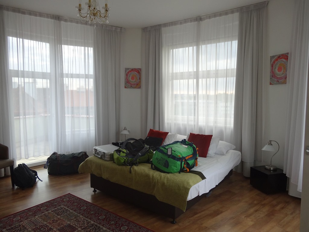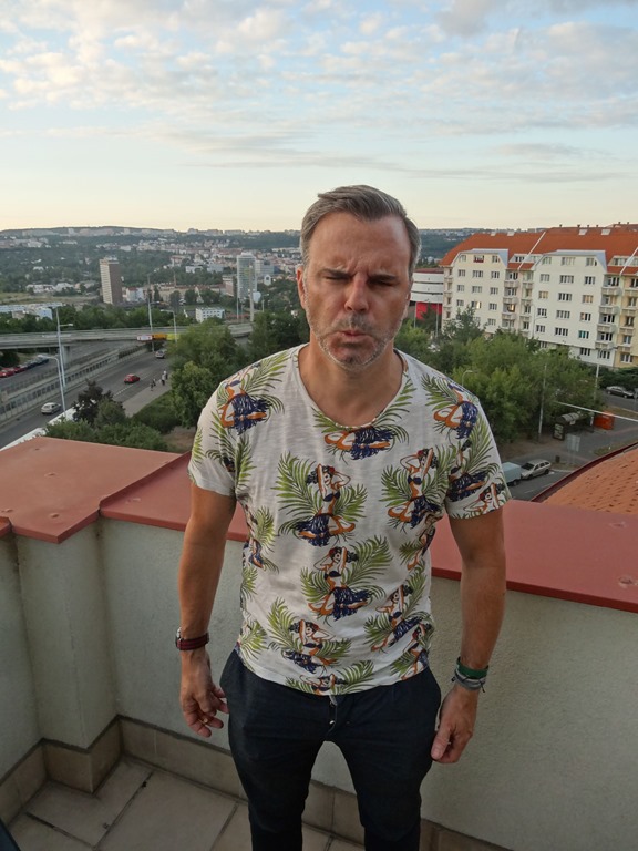 Entspannt liefen wir dann in Prag im Hotel Vitkov ein, wo unsere Booking.com Buchung nicht bloss bestätigt wurde, sondern aus dem Standard-Zimmer mit 2 separaten Betten haben die dann einfach die Honeymoon-Turmsuite herausgelesen und uns so zuoberst einquartiert. War jetzt eher etwas übertrieben, 2 Balkone, Badezimmer mit Whirlpool und Separee mit Sofa – dabei wollten wir ja nur möglichst schnell an die Czech Out Party.