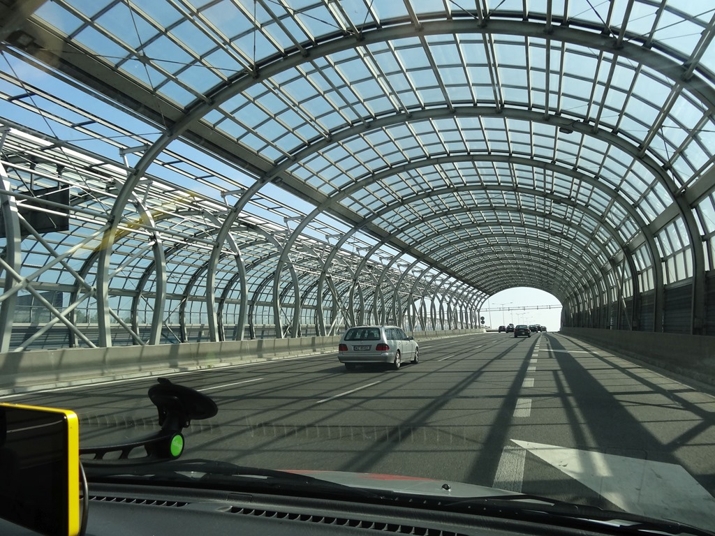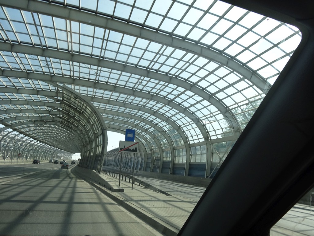 Doch das ist noch gar nichts gegen die hohe Kunst der Schallschutzwände – die Polen schaffen es also sogar solche Schallschutzwände ineinander zu schachteln – als passionierter Lautsprecherbauer muss ich da annehmen, dass dann die eine Röhre als Hochton und die andere als Tief-Mittelton funktonieren soll. Oder wir haben’s einfach nicht begriffen – so oder so ist eine gewisse Aesthetik ja auch noch vorhanden.