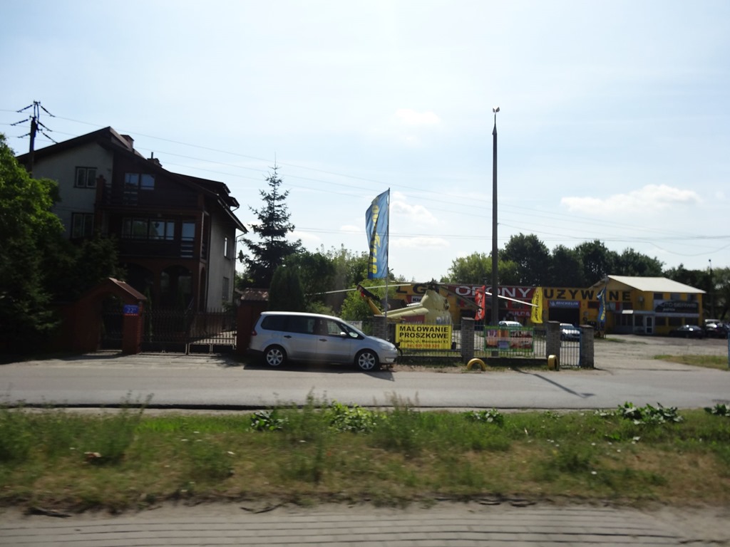 Auf der Ausfahrt nach Warschau waren dann auch wieder diverse Reparaturwerkstätten aufliniert und als wir einen Heli sichteten gab es für Mad Murdoch kein halten mehr – aber es war zugegebenermassen auch ein sehr eindrücklicher Heli – den hätte auch ich gerne mal geflogen!
