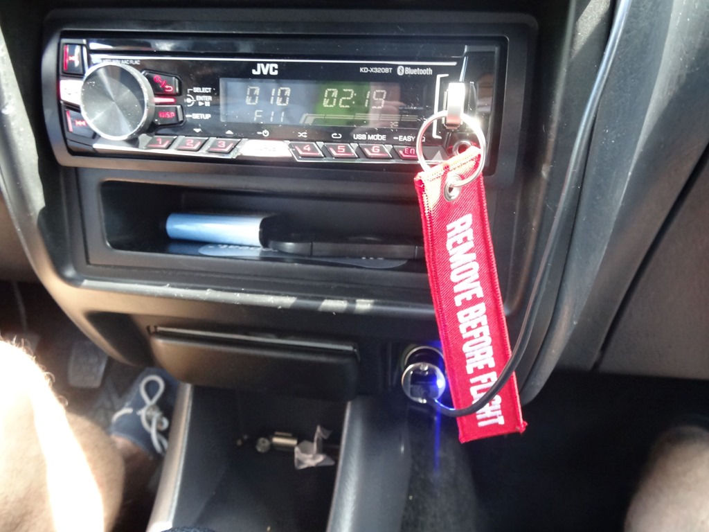 Ein Radio ausbauen geht in Polen übrigens auch ohne Elektriker und dessen Werkzeugkoffer – da muss man nur einfach die gesamte Mittelkonsole ausbauen und schon kommt man an alles ran – sehr gut – denn nun kann ich endlich auch den coolen USB Stick mit Remove before Flight Bändel und korrekten Gitarrensound einstöpseln und so für etwas musikalische Abwechslung sorgen.
