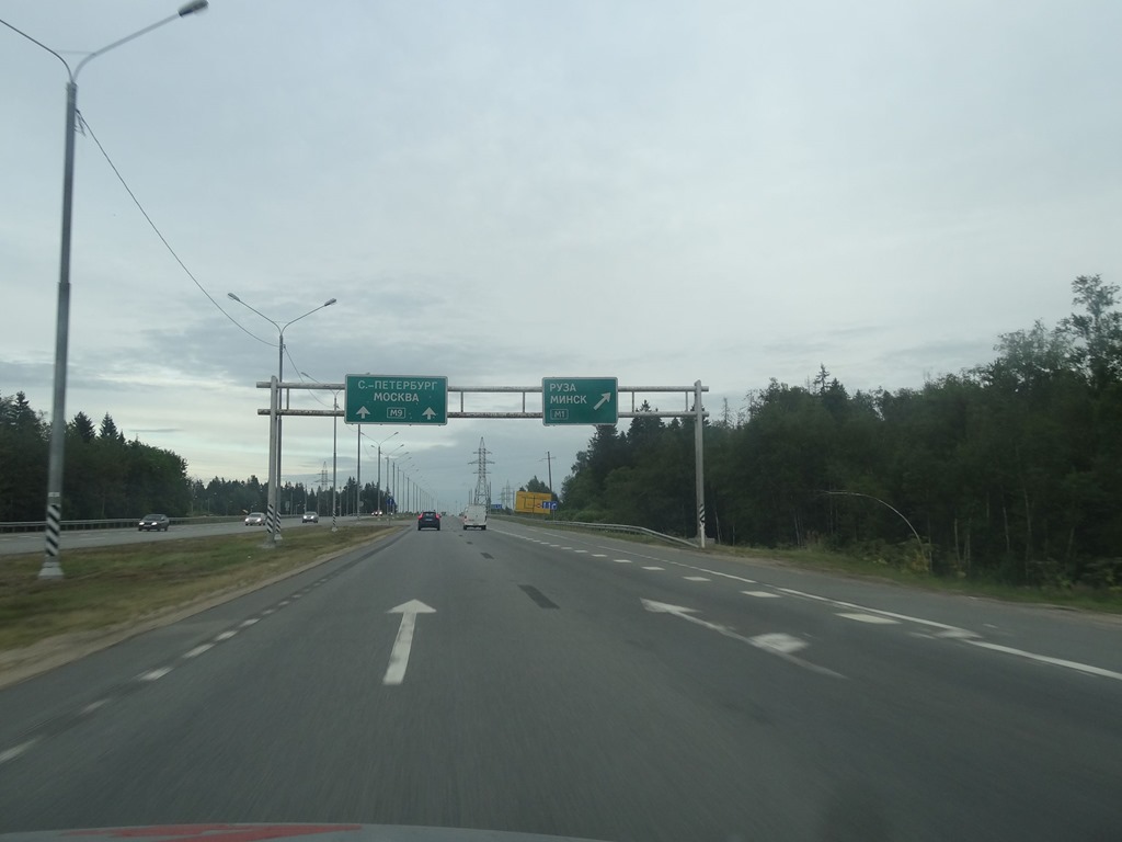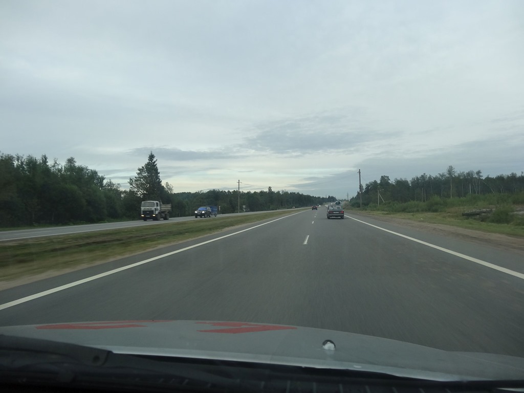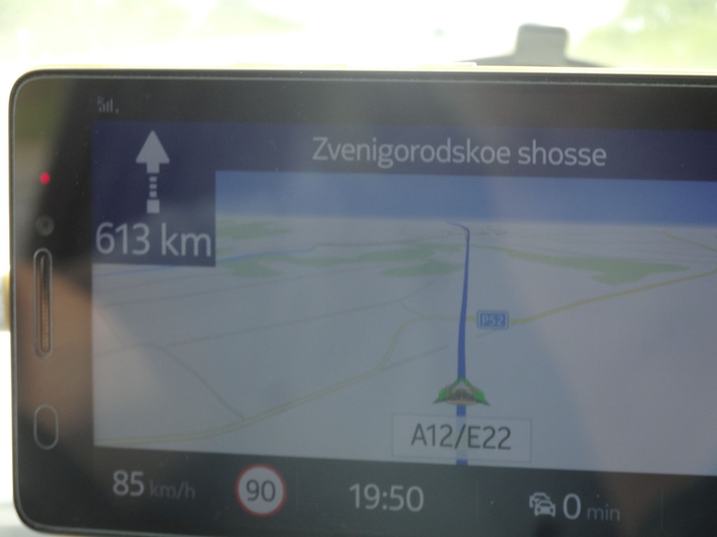 die Störche auf den Feldern und nicht im Ausgang und die Strassen leider in erbärmlichen Zustand, so dass wir Stunden mit bescheidener Geschwindigkeit dahingurkten ohne wirklich vorwärts zu kommen. Aber wie wir wissen bringt Geduld Rosen oder dann halt auch mal eine Zollstation und so liefen wir gegen Mittag in den Prozess ein. In Lettland ausgecheckt, in Russland einige Formulare ausgefüllt, der Drogenhund wurde gezwungen unser Auto zu beschnüffeln, was er aber wirklich nicht wollte, weil er doch schon auf 10 Meter gegen den Wind gerochen hat, dass hier keine Belohnung zu holen ist und schwuppdiwupp nach gut 1h war der Spass schon vorbei und alles klar. Fast alles jedenfalls, denn wir brauchten noch eine Versicherung für Russland und obwohl wir mit der geballten Reiseerfahrung die kleine Bretterhütte am Strassenrand sofort als ortstypische Versicherungsagentur erspähten, war dann der Abschluss der Versicherung eher komplex, weil die sehr nette Dame nun wirklich kein Wort irgendeiner Fremdsprache verstand. Sie hat dann die Zentrale in Moskau angerufen und via Fernberatung, Computer-App und vielen Gesten uns innerhalb einer nächsten Stunde irgendeine Versicherung verkauft – schön ausgedruckt auf grüner Urkunde mit silbrigem Siegel.