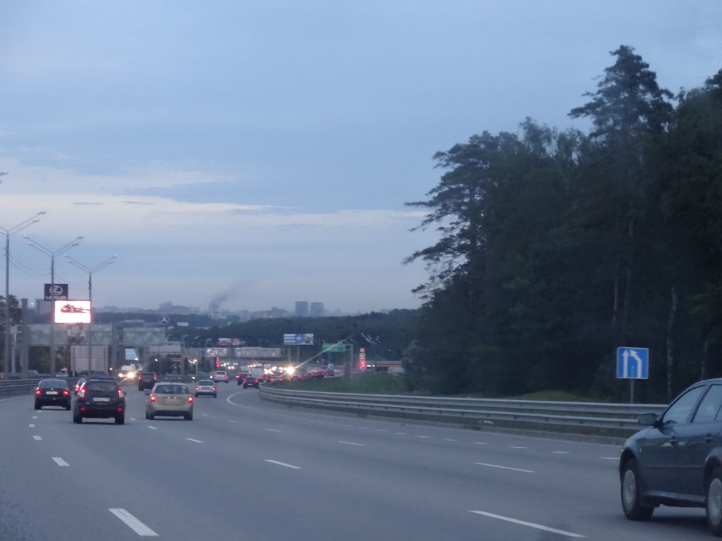 Zur russischen Sprache ist noch anzumerken, dass sie eigentlich sehr gut an die Eigenschaften der Männer adaptiert ist. Denn bekanntlich haben Männer ja nur 2000 Worte pro Tag zur Verfügung und da macht es schon Sinn, wenn man auf russisch nicht fragt: “Könnten Sie mir bitte sagen, wo die Toilette ist?” sondern der Infoaustausch datenoptimiert so lautet “wo Toilette”. Dies darf man den Russen daher auch nicht als Unhöflichkeit oder Wortkargheit auslegen – v.a. die russischen Männer sparen sich einfach ihre Wörter für die wirkliche wichtigen Besprechungen zu Hause in der Familie. Eintauchend in die russische Kultur glitten wir dahin und kamen zumindest Moskau stetig näher. Das Etappenziel Vladimir (nicht Putin sondern die Stadt) lag allerdings unerreichbar fern, aber der Plan war, immerhin noch Moskau auf einem der Ringe zu umfahren, denn Verkehrsstaus in dieser Kapitale sollen oft sehr kapitale Ausmasse annehmen können. Und dass Moskau gross ist, spürt man schon, wenn man – gefühlt 10-spurig drum herum fährt. Mental war’s auch schwierig, weil Mad Murdoch schon lange keinen Chopper mehr fliegen konnte und deshalb schlafen wollte – bloss wo.