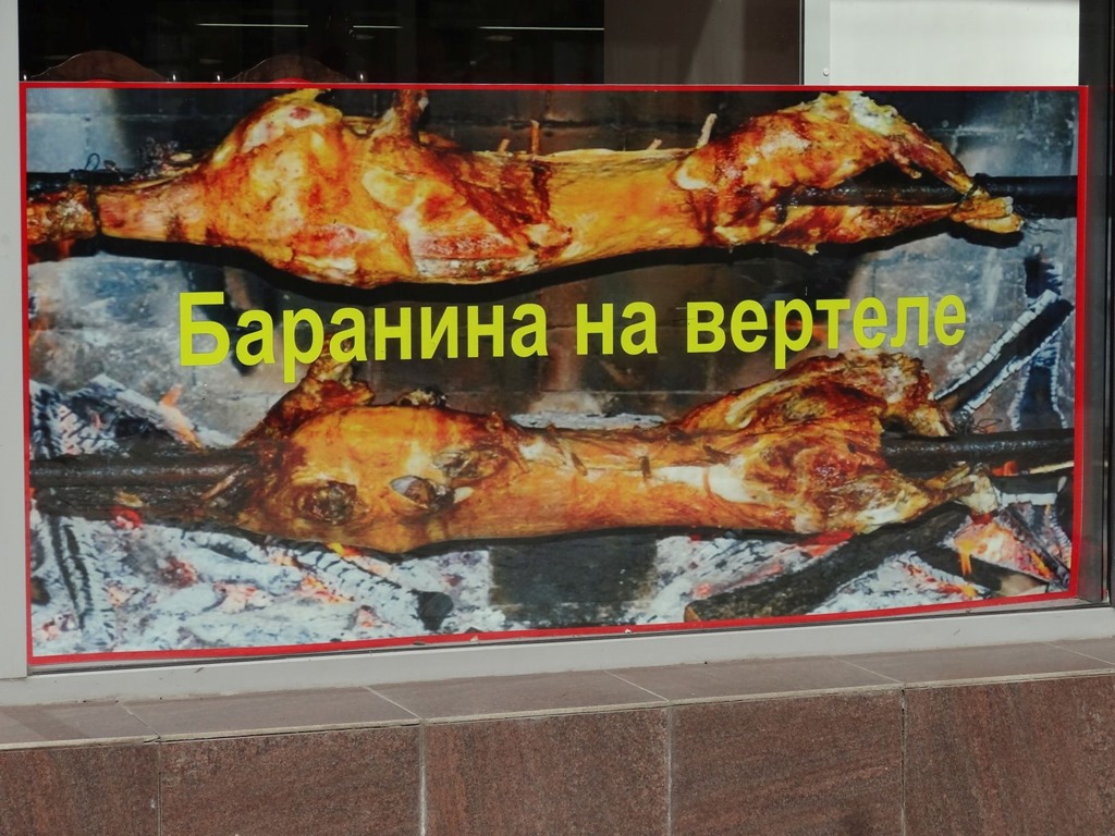 – nein natürlich kein Schwein am Spiess, denn in Tatarstan gibt’s auch einen relevanten Anteil Muslime und da wollen wir uns doch anpassen, obwohl das Foto mit den Grillschweinen von einem türkischen Restaurant stammt und das ergo vermutlich gar keine Schweinchen sondern Lämmchen oder so sind, was nun wirklich sehr lecker gewesen wäre, aber aufgrund der Gewichtsbeschränkungn in Murdochs Chopper einfach nicht mehr drinlag. Also halt gesund ernähren