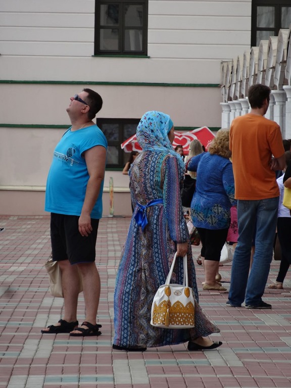 und klar ersichtlich ist auch dass Kazan eine Stadt der Gegensätze, der Mitte zwischen Okzident und Akzident oder wie immer – das hat Murdoch aus dem Wiki vorgelesen und ich musste mich aufs Fahren konzentrieren – also sagen wir zwischen Abend- und Morgenland, wobei die nächste Frage wäre wo Abend und wo Morgen ist und wer das Abend und wer das Morgenkleid anhat – aber lassen wir das.