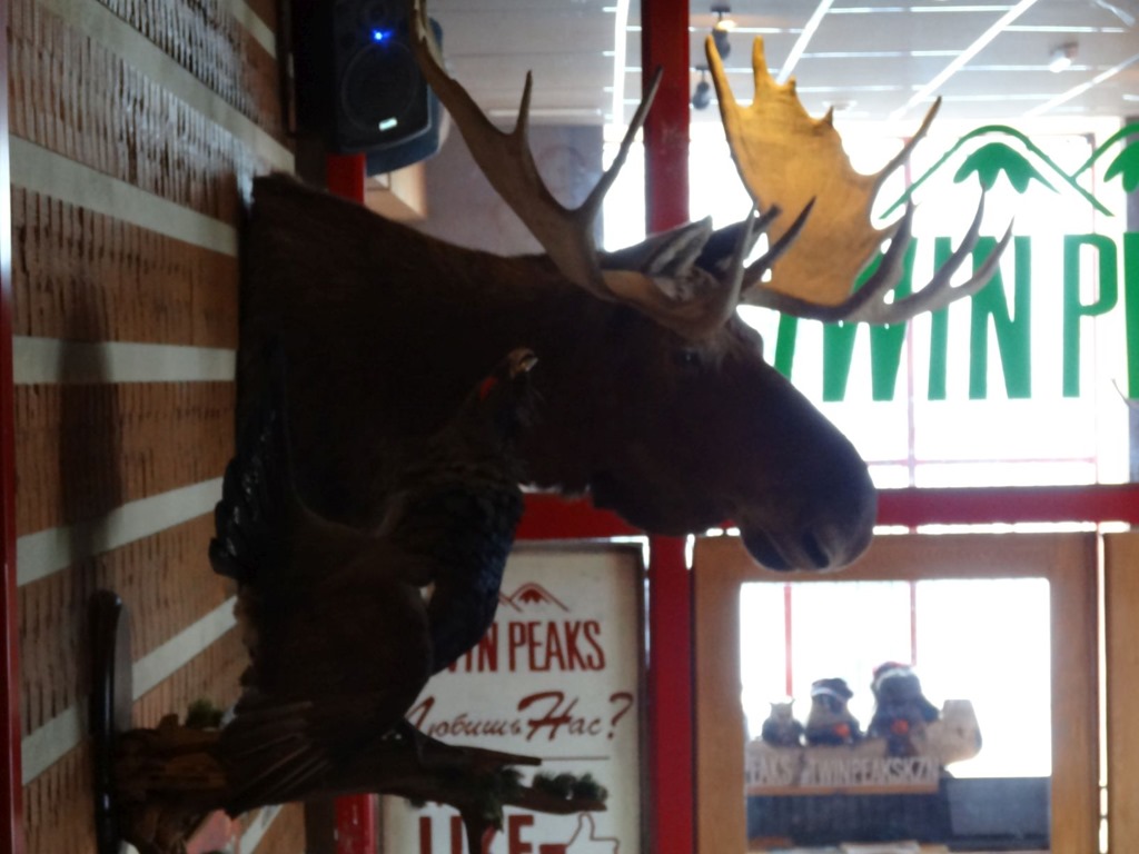 Jedenfalls haben wir uns im Twin Peaks dermassen gut erholt, dass wir sogar noch auf die Toilette mussten. Und dabei feststellten, dass dieser Schuppen eigentlich ein halber Zoo ist – auf dem Weg ins WC (Oben im 4. Stock – wo gibt’s denn sowas?) begegnet einem jedenfalls die halbe Flora und Fauna aus Sibirien – müssten wir eigentlich gar nicht mehr hinfahren hmm?