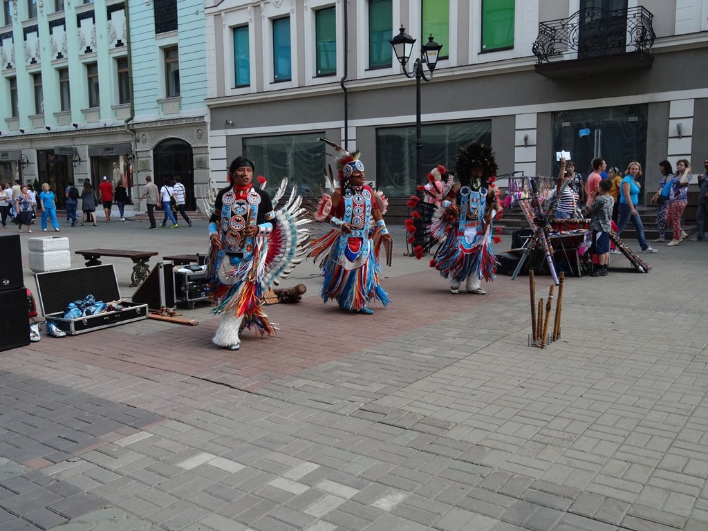 und ein paar Ureinwohner von irgendwo waren auch da – gemäss Handy-Russisch unserer Serviertochter (das geht so – wir gestikulieren und machen typische Geräusche – sie zückt das Handy und haut kyrillisch in die Tasten bis unten Englisch rauskommt. Zur Frage nach den Federgesellen meinte das Handy “These are Actors they are travelling all around Russia dancing and singing to make rain” – worauf wir denen keinen Rubel mehr gespendet haben – Regen brauchen wir nicht.